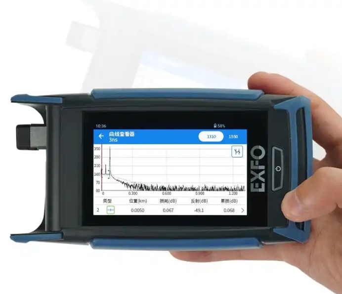 EXFO AXS-115光時(shí)域反射儀采用4英寸高清戶(hù)外觸摸屏,圖像清晰,反應(yīng)靈敏,整體外觀小巧便攜,整體外觀緊湊且只有兩個(gè)端口,分別為OTDR測(cè)試端口和type-c充電端口,OTDR測(cè)試端口大家可以根據(jù)自己的測(cè)試需求選擇不同的端口類(lèi)型,底部為type-c端口,用于充電和數(shù)據(jù)傳輸。