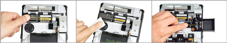 The Swift S5 的人體工程學一體式設計使得用戶能夠方便、快捷地完成光纖熔接的5個步驟(熱剝、清潔、切割、熔接與熱縮)。此外,自動熱剝器的使用,大大降低了使用機械式剝纖器時因劃痕導致故障的可能性。