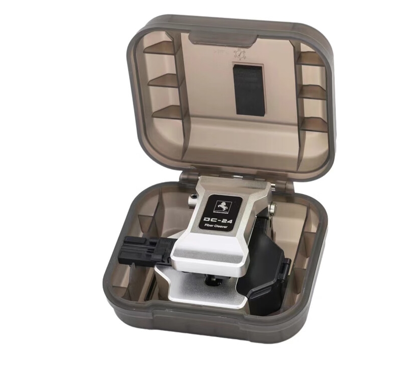 DC-24黑馬光纖切割刀適用于光纖切割單芯光纖、帶狀光纖、皮線光纖。黑馬DC-24 光纖切割刀切割角度小、端面平整,操作簡單,使用三合一夾具可直接切割皮線光纜,跳線,裸纖,操作簡單方便,一步回刀切割設計。