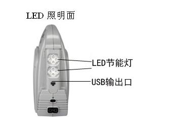 4.USB輸出接口,便于野外工作人員給手機,MP3,相機等數(shù)碼用品充電。