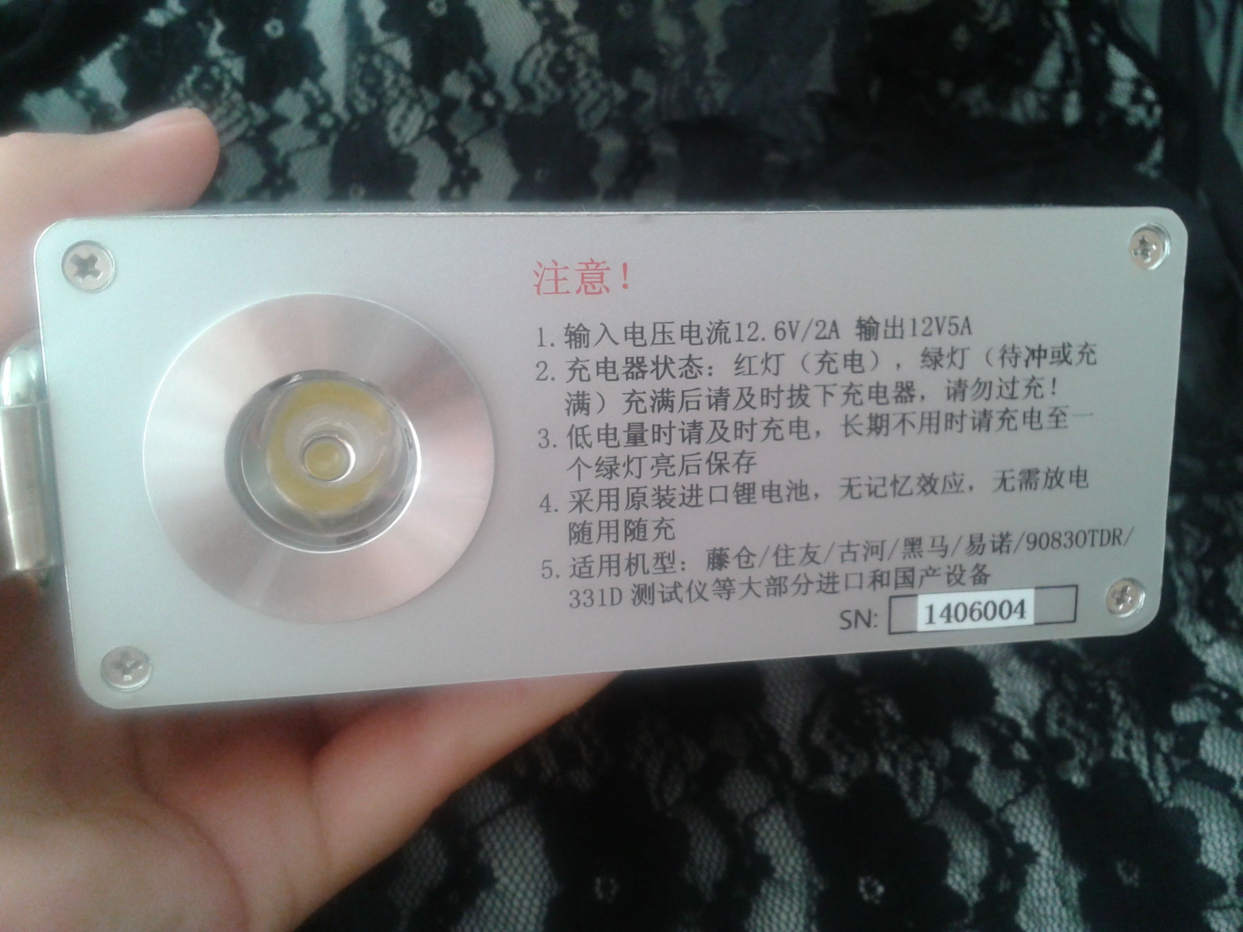 8. 采用進(jìn)口鋰電池芯,質(zhì)量保證,無(wú)記憶效應(yīng),無(wú)需進(jìn)行放電,可以像手機(jī)電池一樣隨時(shí)充電,配有12V/2A快速充電器。