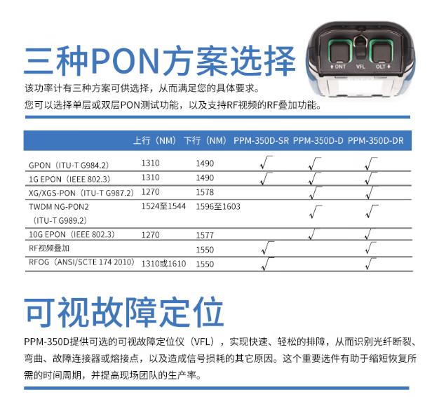 PPM-350D是一臺智能PON儀表,這款智能的PON功率計地采用了PON-aware?功能,能夠自動檢測在用戶駐地所用的PON技術(shù),并據(jù)此調(diào)整測試參數(shù)來進(jìn)行測試
