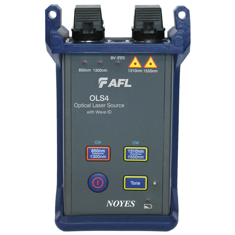 NOYES OLS4 from AFL is a hand-held, rugged, integrated two-port LED and LASER light source designed for performing insertion loss measurements on multimode or single-mode fiber optic links when used with an optical power meter. The LED and LASER outputs are stabilized to ensure accurate test results per current TIA/EIA requirements.